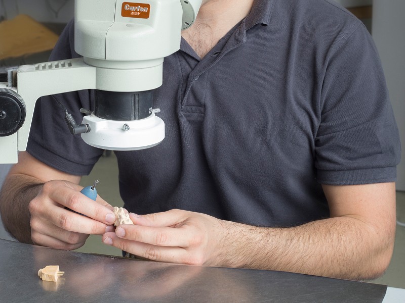 A fogpótlások digitális terveit a gipszmodellek lézeres szkennelését követően, 3D-s tervezőprogrammal készítjük el. A tervek alapján a hidakat, fémlemezeket, implantátum felépítményeket erre specializálódott frézcentrumokban nagy pontosságú CNC marógéppel vagy lézerszinterrel gyártják le.